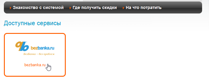 Для перехода к привязке, выберите сервис bezbanka.ru: